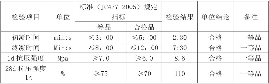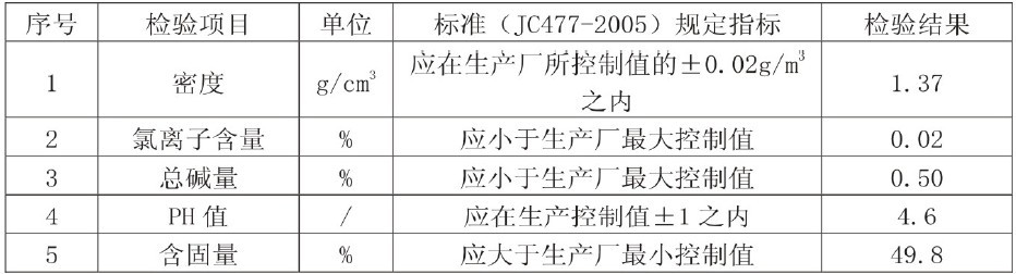 本品主要由无机硫铝酸盐、有机促凝剂、稳定剂、稀释剂等组分构成,在水泥浆体中,X-离子、SO42-和Al3+等离子与水泥中的阴阳离子结合,生成大量晶体,并且使得水化产物(C-S-H)中的C/S值降低,C3S表面的双电层难以形成,加上有机促凝组分的引入,从而使水泥迅速凝结;同时由于引入了自制的稳定剂使得产品各材料间离子形成相互不产生碰撞,产品不产生沉淀、析晶等现象。本产品在0℃甚至更低温度的条件下不会产生沉淀。